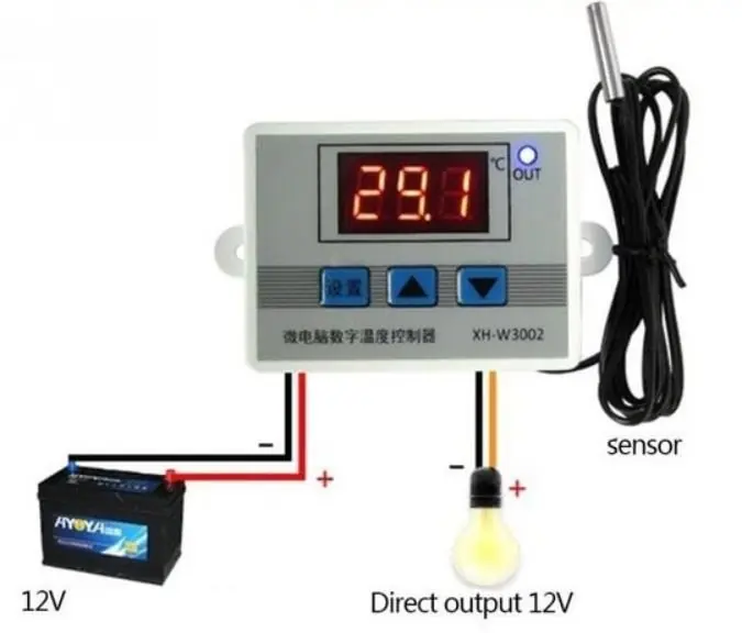 The 12V Digital Thermostat controls whether the relay is in an ON or OFF state based on the temperature you set. With its waterproof and durable temperature sensor, it can be used in projects that require operation under harsh conditions such as aquariums, incubators, refrigerators, and chick brooding cages.